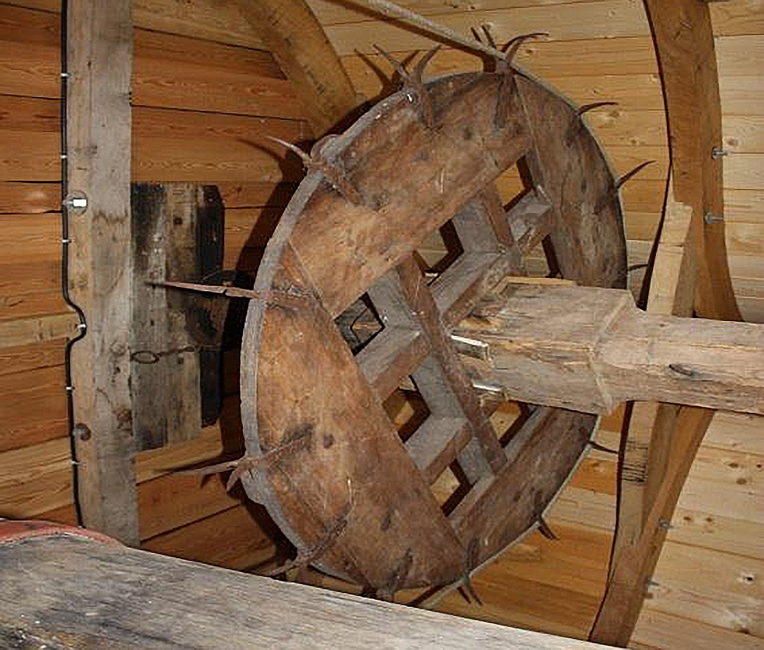 gelagert ist. Der Hammerbalken trägt das gesamte Mühlengebäude.